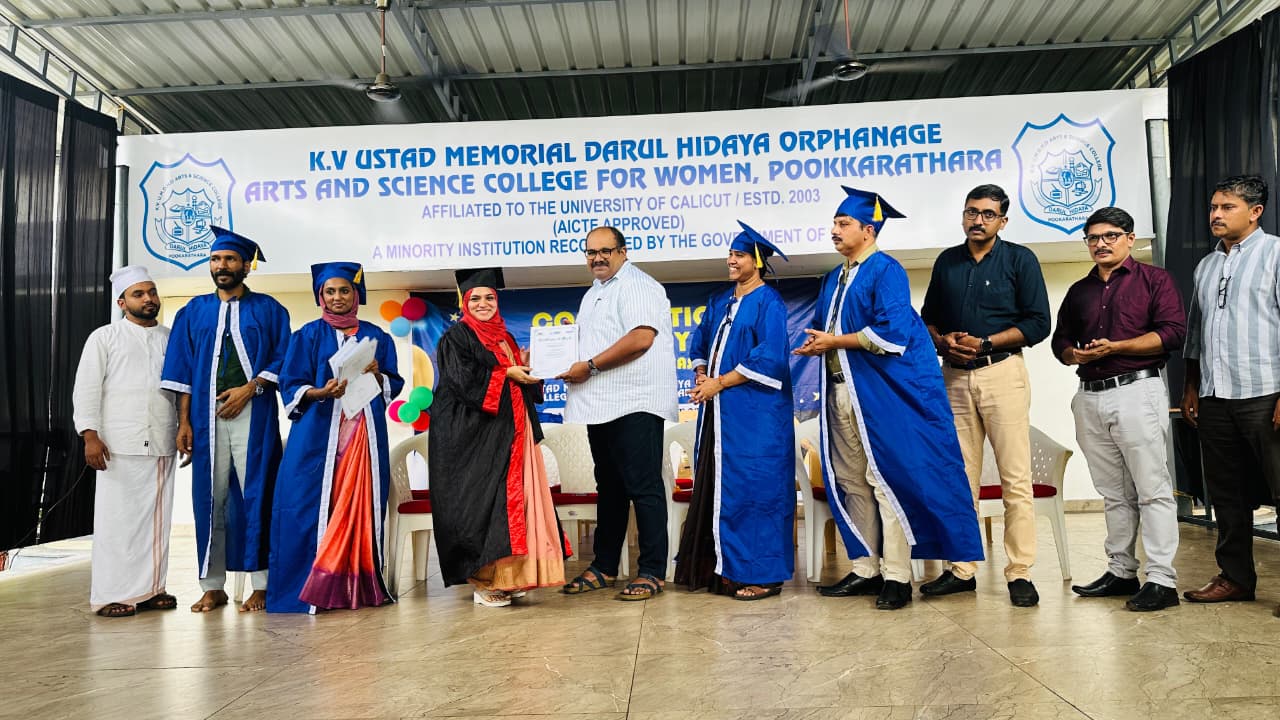 The program concluded with a speech by Smt. Ahsana, Head of the Psychology Department.A convention program was held at K.V. Ustad College for the 2022-25 batch of students. The program was inaugurated by P.V. Muhammad Maulavi, Manager of the college and Rector of Darul Hidayah institutions. College Vice Principal Jishad Arakkal welcomed the gathering, while Principal Hashim Thadathil delivered the presidential address.