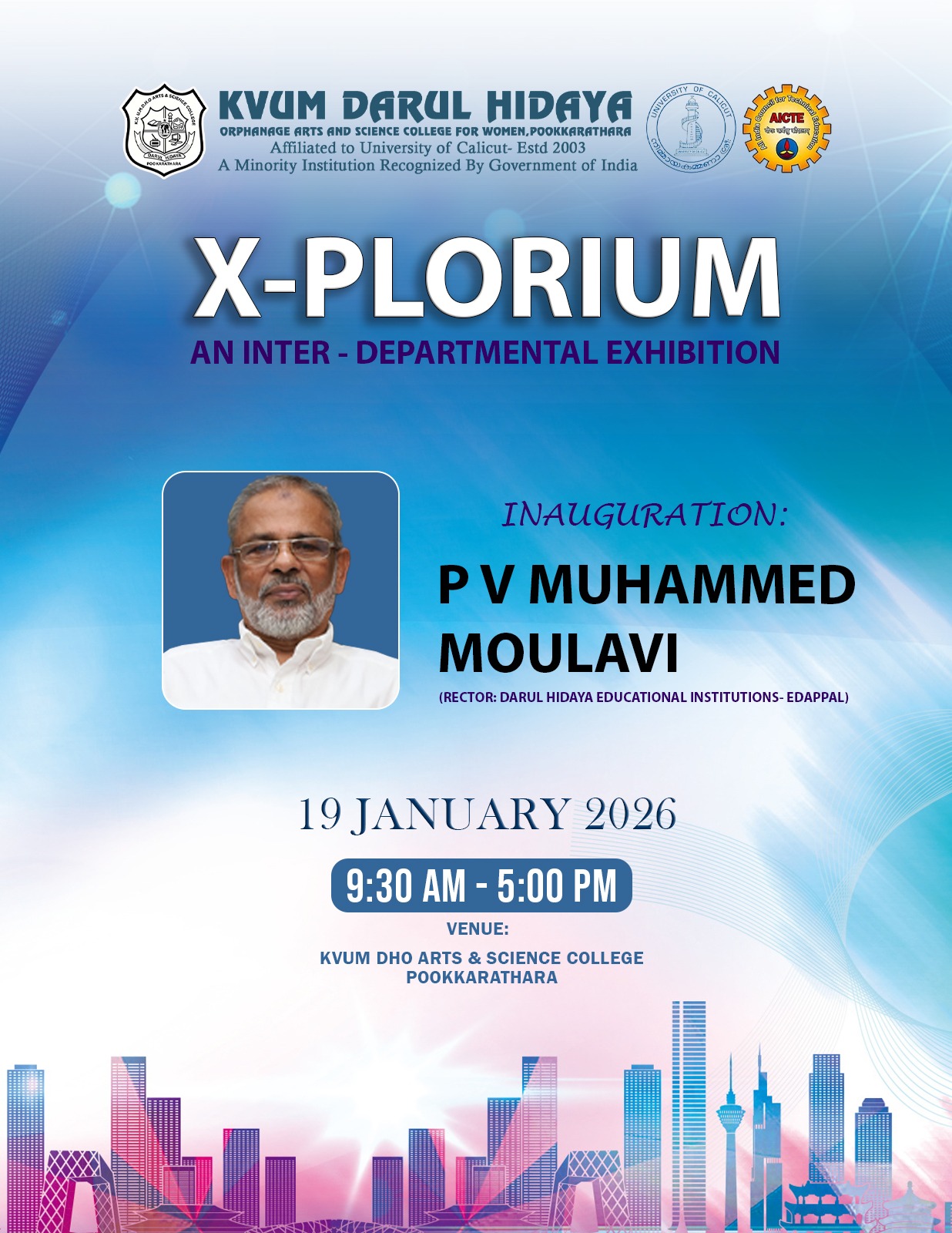 An exhibition was successfully conducted on 19 January 2025 at K.V.U.M DHO Arts and Science College, showcasing creativity, innovation, and academic excellence. The exhibition was formally inaugurated by P. V. Mohammed Moulavi.