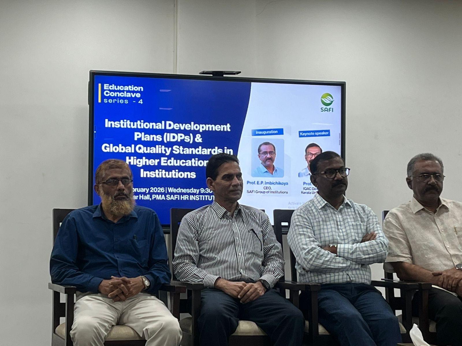 The SAFI Education Conclave Series–4, organized under the leadership of the SAFI Centre for Social Empowerment, was held on February 4 at the SAFI campus. The conclave focused on the theme “Institutional Development Plans (IDPs) and Global Quality Benchmarks in Higher Education Institutions.”
